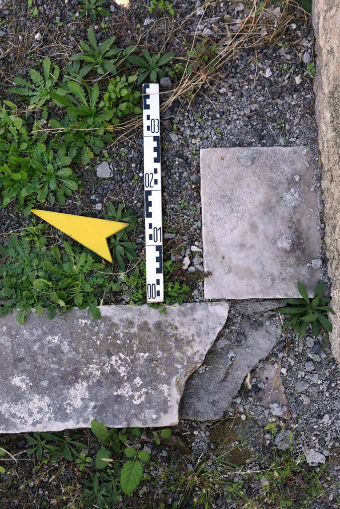 I.4.25/1.4.5 Pompeii. October 2019. Tablinum 14, detail of threshold on west side.