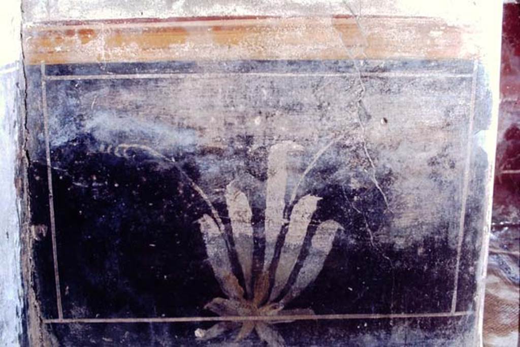 Looking towards zoccolo with painted plant, from south wall at end of large recess in tablinum. Photo by Stanley A. Jashemski.