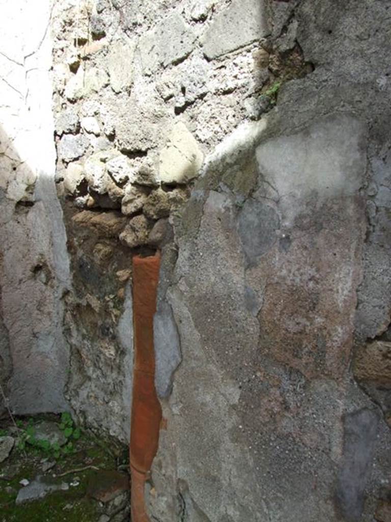 VI.16.28 Pompeii. March 2009. Room G, east wall with down pipe.