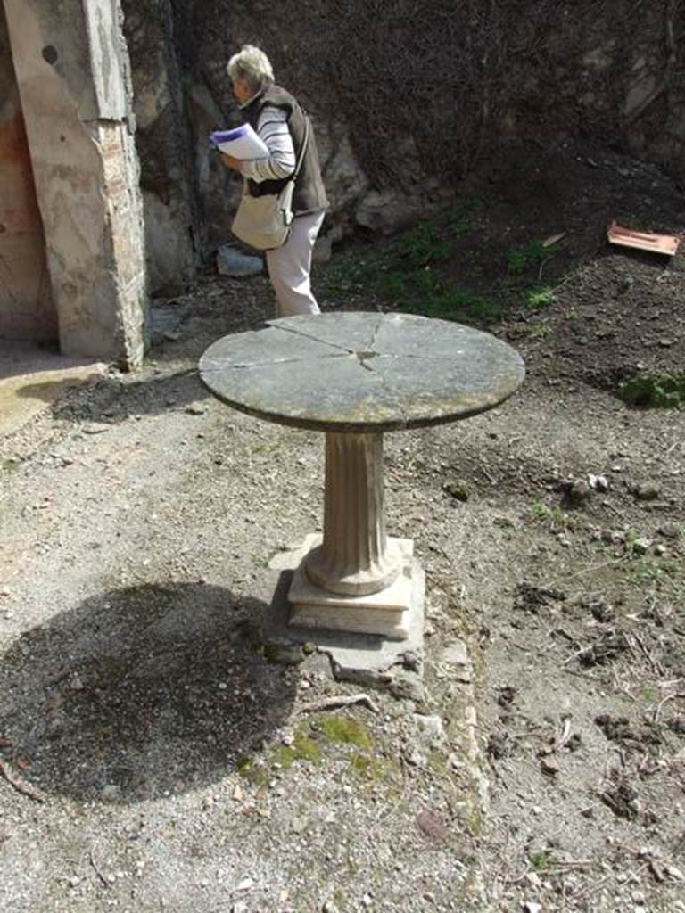 Looking across site of impluvium (a) and round table (c) to south wall.