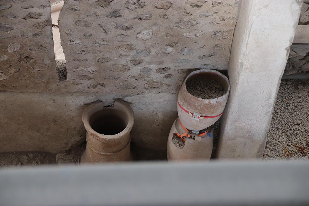 IX.12.4 Pompeii. October 2024. Small courtyard “m”, amphorae in north-west corner. Photo courtesy of Klaus Heese.