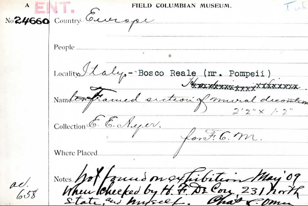 Villa della Pisanella, Boscoreale. Fresco fragment (2ft 2inches by 1 foot 2 inches) which appears to have been missing in 1909.